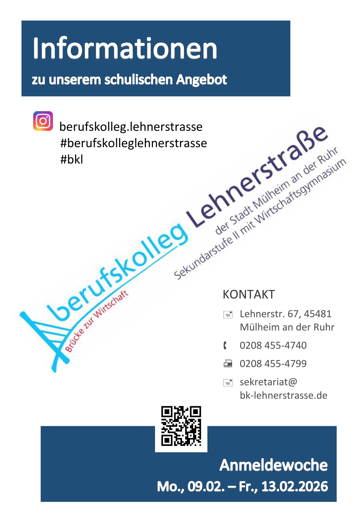 Lerne unser LehrerInnen-Team und das vielfältige Bildungsangebot kennen. In Zusammenarbeit mit unseren SchülerInnen erhältst Du an diesem Abend Einblicke in unser Schulleben, Projekte und Bildungsgänge. Außerdem beantworten wir Dir und Deinen Eltern Fragen rund um Aufnahmevoraussetzungen und den Schulalltag am BK-Lehnerstraße.